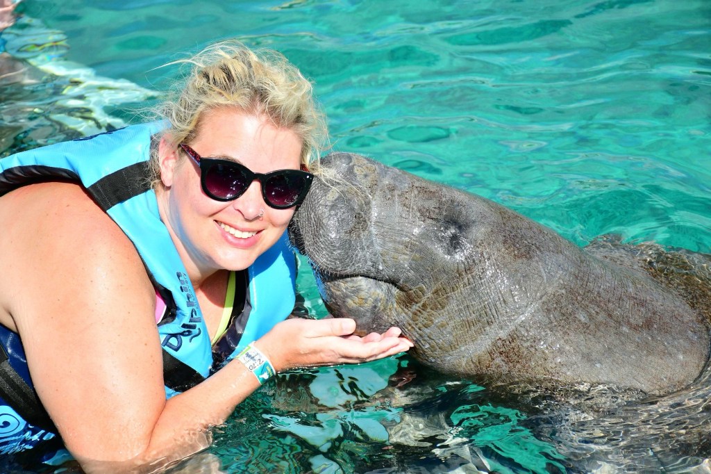 Admission is $24 per person and well worth it. There is an abundance of loungers and shade. You can go through viator and pay $39 per person which includes a buffet lunch and 2 soft drinks or beers. The buffet lunch isn’t that great so for me I prefer to eat a good breakfast and wait till our arrival back to the ship for a late lunch. The park is large with lots of things to do for free or some you pay extra. You can snorkel, visit the tropical gardens, swim in the pool, or watch some of the animal exhibitions all which are free. For the extra things they have scuba diving, snuba, zip lining, a spa area for massages which are super cheap and well worth it, kayaking, and of course you can swim with the dolphins or manatees.