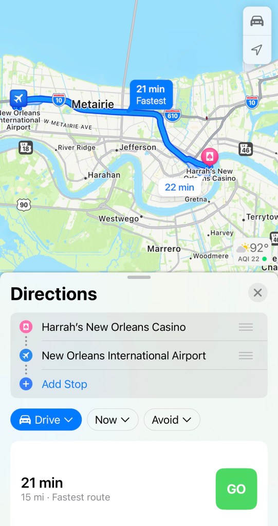 So a quick up and down 1:15 minute flight we make it to New Orleans. Claim our luggage and out to grab an Uber to our hotel.
