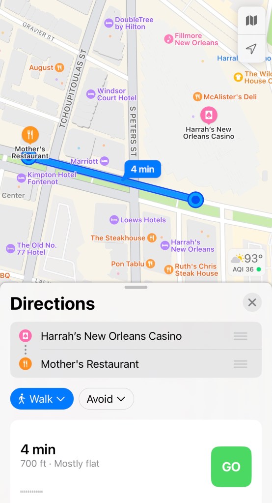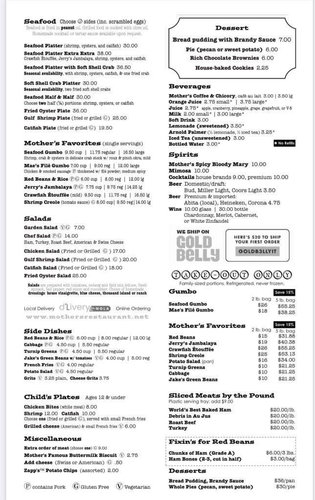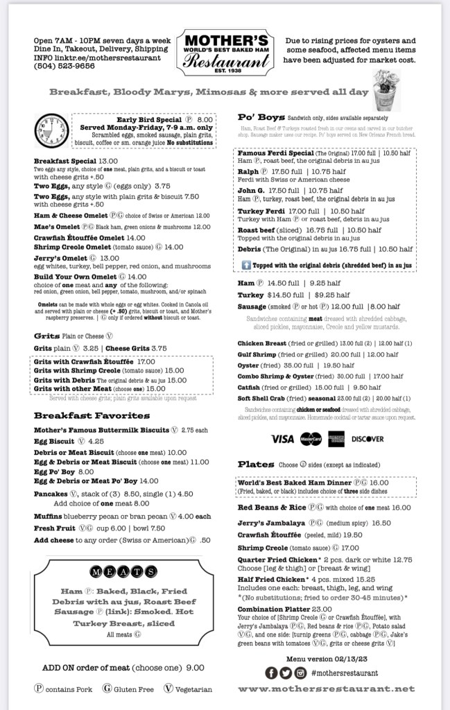 So I like going out of New Orleans as I have Diamond Elite status with Caesars so we get comped rooms. Our first thing on the agenda once we checked in was to go have a late lunch. Our go to spot in New Orleans is Mothers. It’s a quick two block walk and your there.
