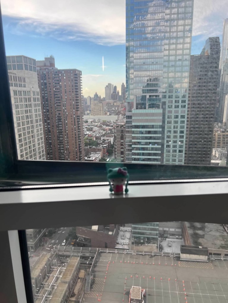 So, after standing around for about 30 minutes and realizing the fireworks weren’t starting for 30 more minutes, we decide to make our way out of this mess. What were we thinking. Bad thing was once we got off this street it took over an hour to get back towards Times Square so we could move without pushing through people. So learned our lesson but of course Hello Kitty had to have her picture made before we left.